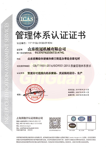 山東桂冠機械有限公司成立于2008年,注冊資金1600萬元,現(xiàn)有員工200多人,中高級技術管理人員45人,占地面積27000多平方米,生產(chǎn)車間面積12000多平方米。公司具備壓力容器產(chǎn)品的設計、制造(證書編號為:TS2237703-2025)、壓力管道安裝(證書編號為TS3837607-2025)全套壓力容器資質(zhì);通過國家ISO9001質(zhì)量管理體系認證、美國ASME認證、歐盟CE認證;擁有建筑安裝機電工程專業(yè)承包叁級資質(zhì)、建筑工程施工總承包叁級資質(zhì)及對外貿(mào)易經(jīng)營出口權…
